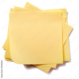 Untidy stack or pile square yellow sticky post it note isolated on white background photo