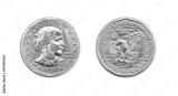 american one dollar coin both sides isolate on white background. 1979 used USA 1 dollar realistic photo image