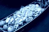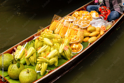 Long-tail boat with fruits on the floating market, Damnoen Saduak floating market in Ratchaburi near Bangkok, Thailand