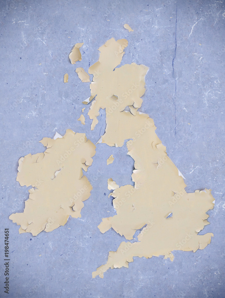 Unusual map of the United Kingdom, map from cracked plaster