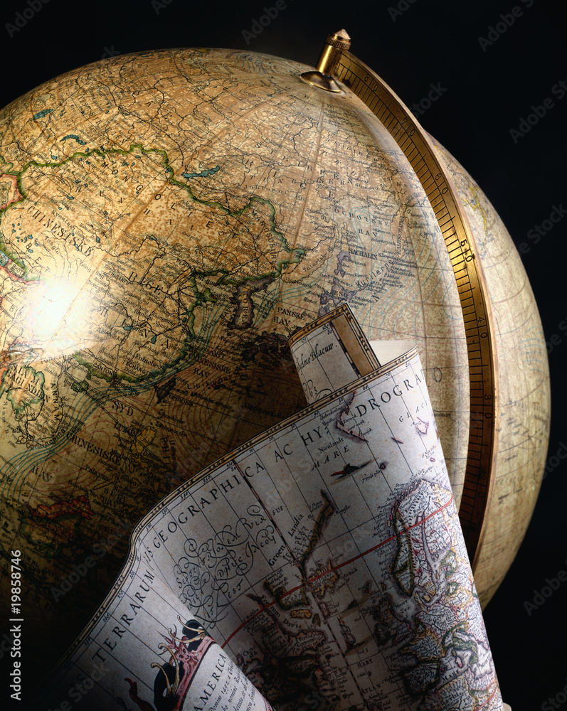 Antique globe and map of the world