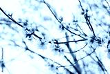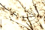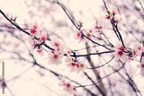 Branches of flowering almonds against a clear sky