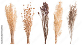 Dry color grass flower for interior decoration. Studio shot and isolated on white