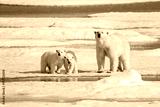 Polar bear mother with two cubs on ice