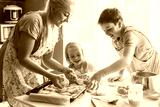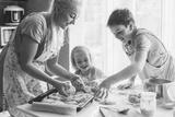 Mom cooking with kids on the kitchen