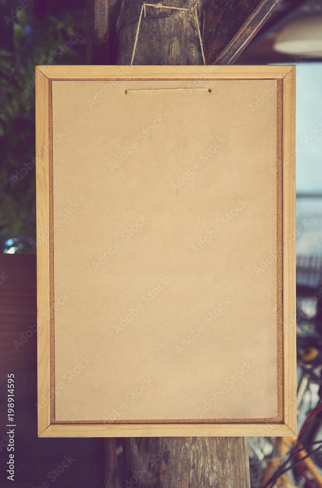 Empty wooden frame rests on the wall of tree. natural pattern for beautiful wallpapers. Suitable for use an luxurious background. Vintage tone