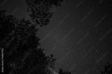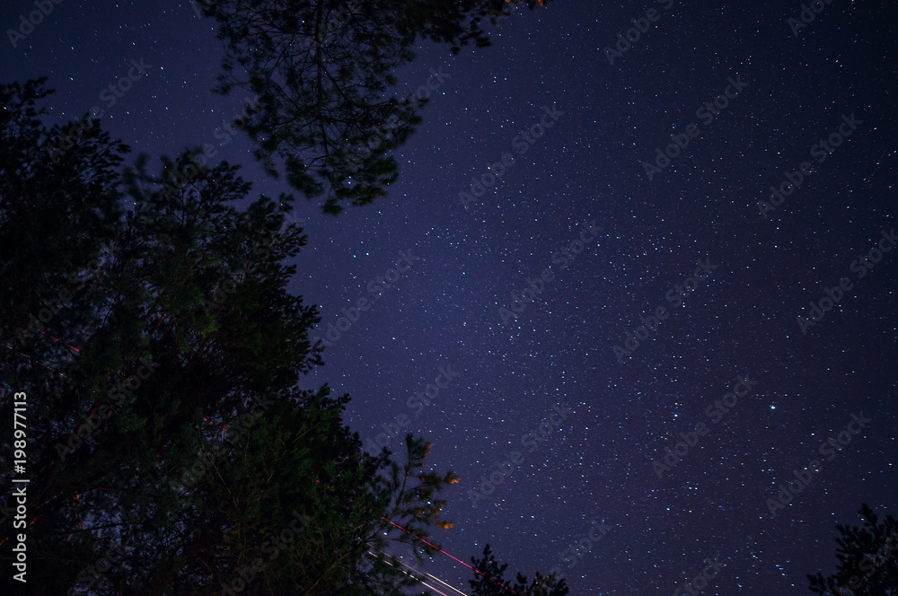 Starry the sky in the forest among branches of trees