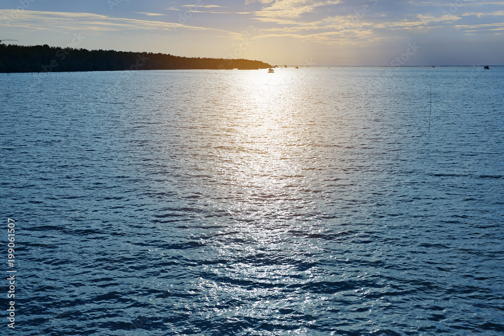Sparkle of sunshine reflection on the blue sea.