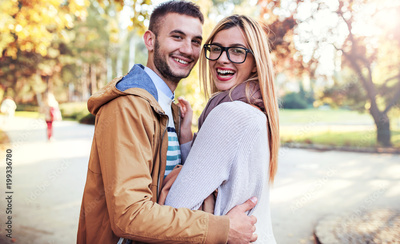 Meeting in the park. Romantic couple having fun in the city park. Love, dating, romance