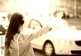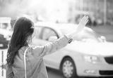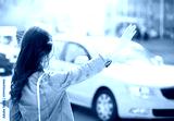 gesture, transportation, travel, tourism and people concept - young woman or teenage girl catching taxi on city street or hitch-hiking