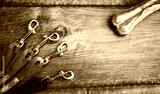 Pet accessories on wooden background. Top view. Pets and animals concept