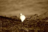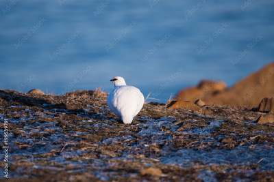 close-up of a white polar partridge on a sunny winter day in the Svalbard archipelago, Arctic birds