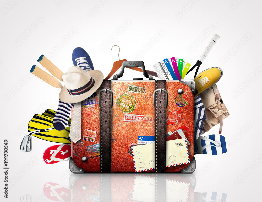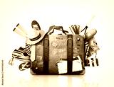 Retro suitcase of a traveler with travel stickers