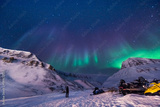 The polar arctic Northern lights aurora borealis sky star in Norway Svalbard in Longyearbyen city man mountains