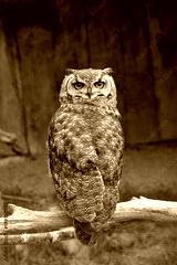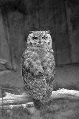 Single African Spotted eagle-owl, Bubo africanus, in a zoological garden
