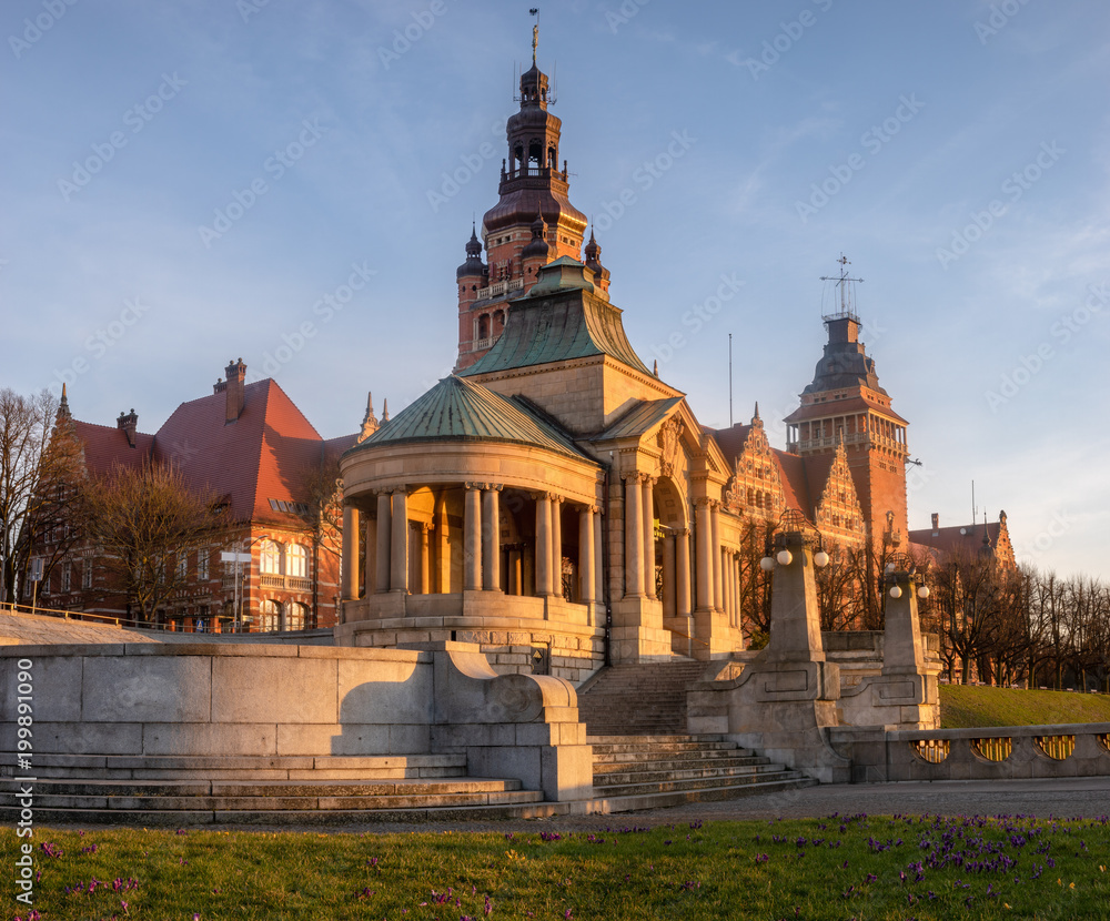 Crocuses blooming on Haken Terrace in Szczecin, Poland.