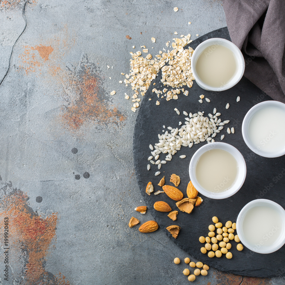 Assortment of organic vegan non diary milk
