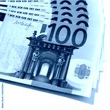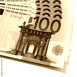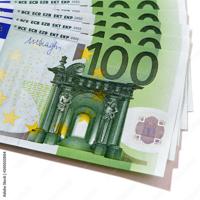 Euro 100 one hundred banknote european money currency bill note several group fan shape isolated on white background photo