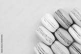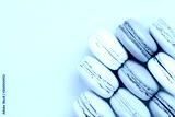 Cake macaron or macaroon on pink pastel background top view. Flat lay composition.