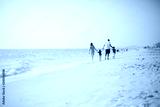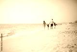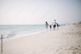 Family with Young Boys Holding Hands and Walking Down the Coastline at the Beach