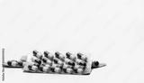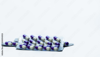 Fluconazole : Antifungal medicine. Heap of pills in blister packs on white background. Healthcare concept. Medicine pills can cause liver damage. Pharmaceutical industry background.