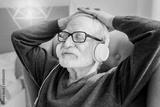 Absolute relaxation. Nice relaxed aged man wearing headphones and closing his eyed while listening to music
