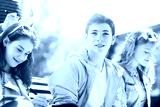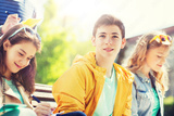 education, high school and people concept - group of happy teenage students with notebooks learning at campus yard