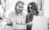 Shopping time. Young women shopping together. Consumerism, shopping, lifestyle