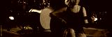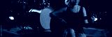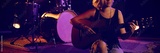 Female practicing guitar while sitting on stage
