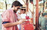 Shopping time. Young couple in shopping. Consumerism, love, dating, lifestyle concept