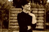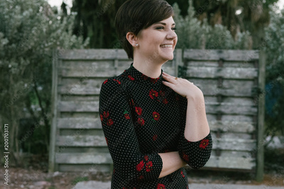 Cute Female Model Having Fun Posing in Front of Wooden Wall in Nature