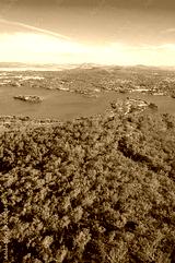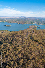 Aerial view of Canberra and surrounding landscape