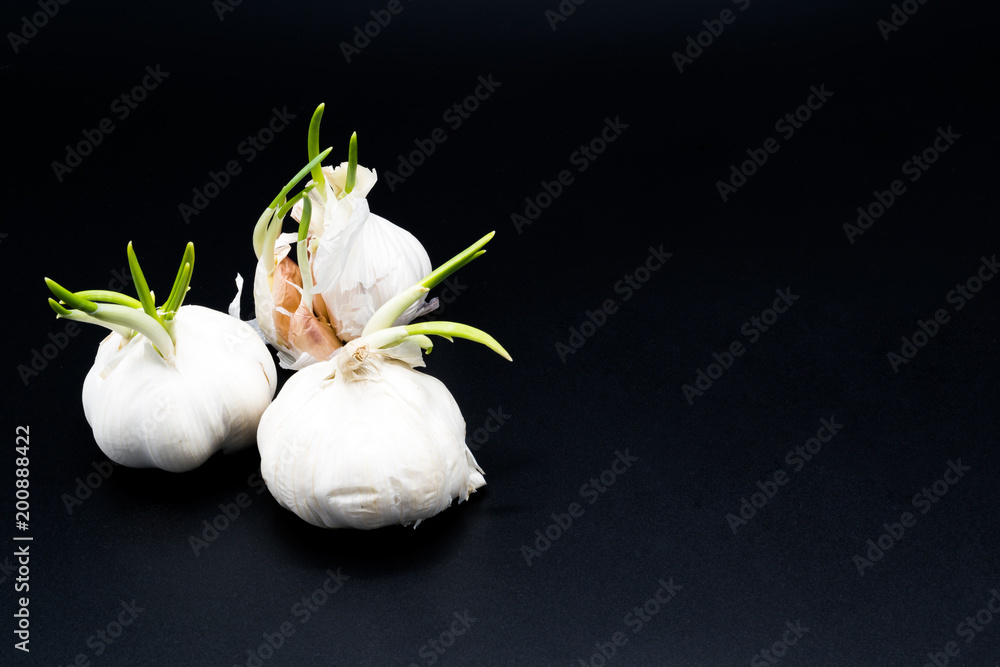 sapling of garlic growing as New life, Organic Agriculture in Nature Concept - isolated