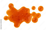 Sweet and sour sauce stains. Splashes and spilled orange sauce isolated on white background. Top view