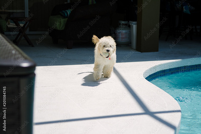 Adorable Puppy Playing Outside by the Pool