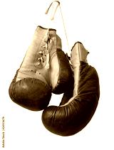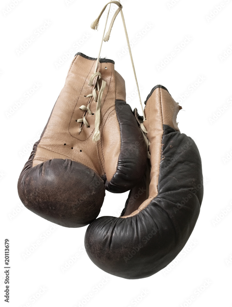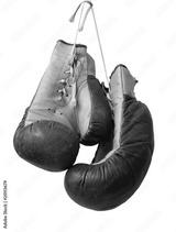 Old boxing gloves hanging on a lace