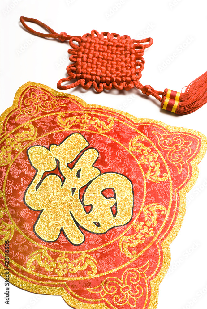 Vector of Auspicious Symbol "Fu" and Chinese decorative knots