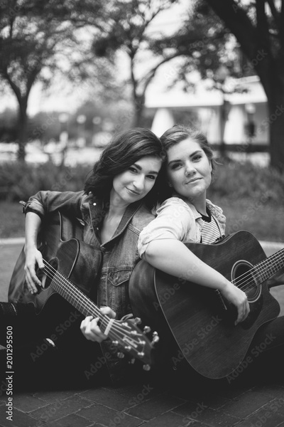 Cute Attractive Female Musician Friends Smiling and Modeling