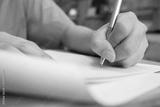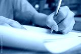 School Students hands taking exams, writing examination room with holding pencil on optical form of standardized test with answers and english paper sheet on desk doing final exam in classroom.
