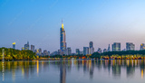 Nanjing Xuanwu Lake Financial District building landscape night view and city skyline