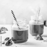 Healthy green vegan smoothie with spinach, spirulina and chia seeds