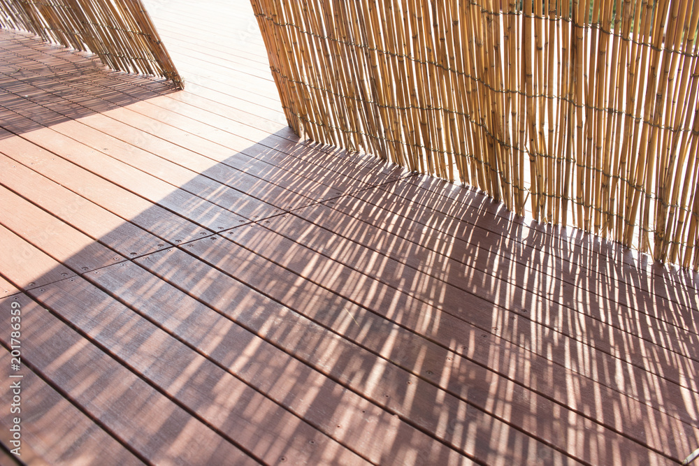 Japanese Bamboo Sudare Blinds on Wooden Deck