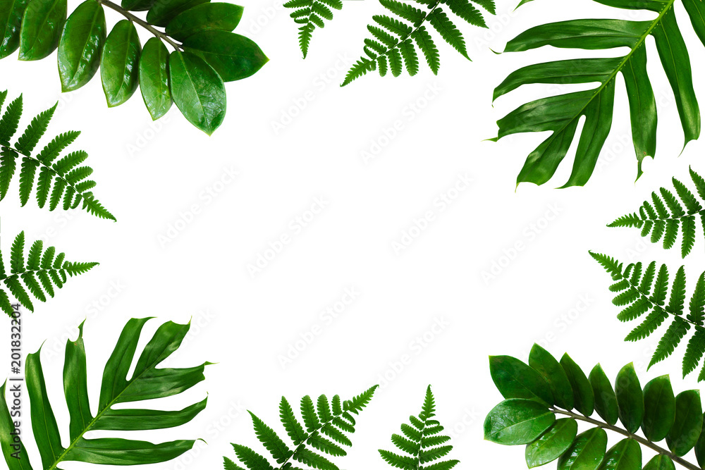 Tropical green leaf frame on white background