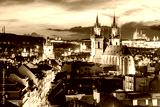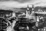 Amazing cityscape view of Prague Castle and church of our Lady Tyn, Czech Republic during sunset time. View from powder tower. World famous landmarks in Europe.
