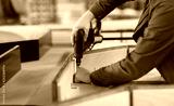 production, manufacture and industry concept - assembler working with electric screwdriver making furniture at workshop