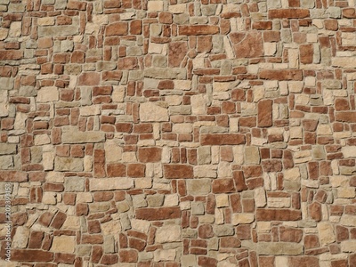 Natural stones wall texture made of irregular shape rocks. Colors are brown,white and grey