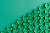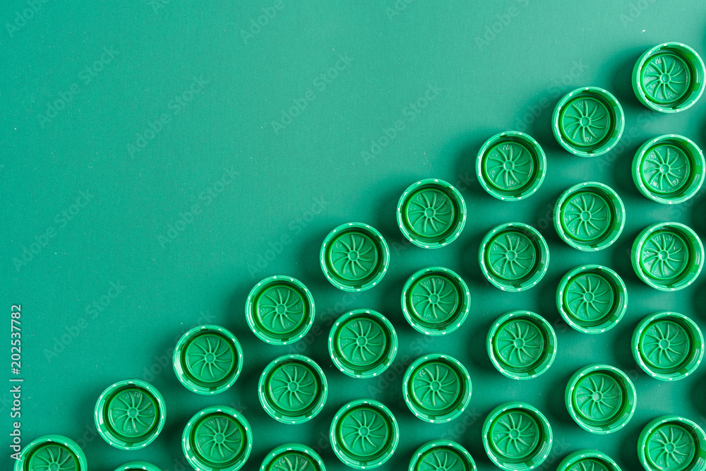 green caps from plastic bottles folded with a repeating pattern