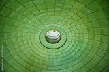 Emerald green metal dome with intricate close-knit dot pattern—stunning architectural texture beautifully illuminated for design and architectural visuals.