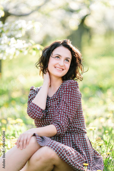weather, beauty, peace concept. there is a joyful woman who are enjoying her life, summer hot weather, beauty of nature, her beautiful face is illuminated with clear light of spring sun