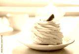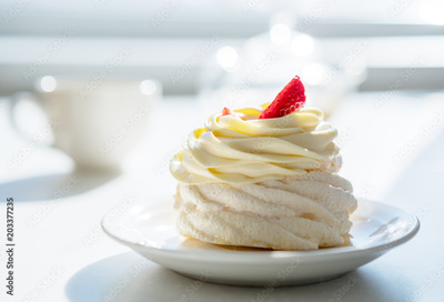 homemade cream cake on table in sunny room